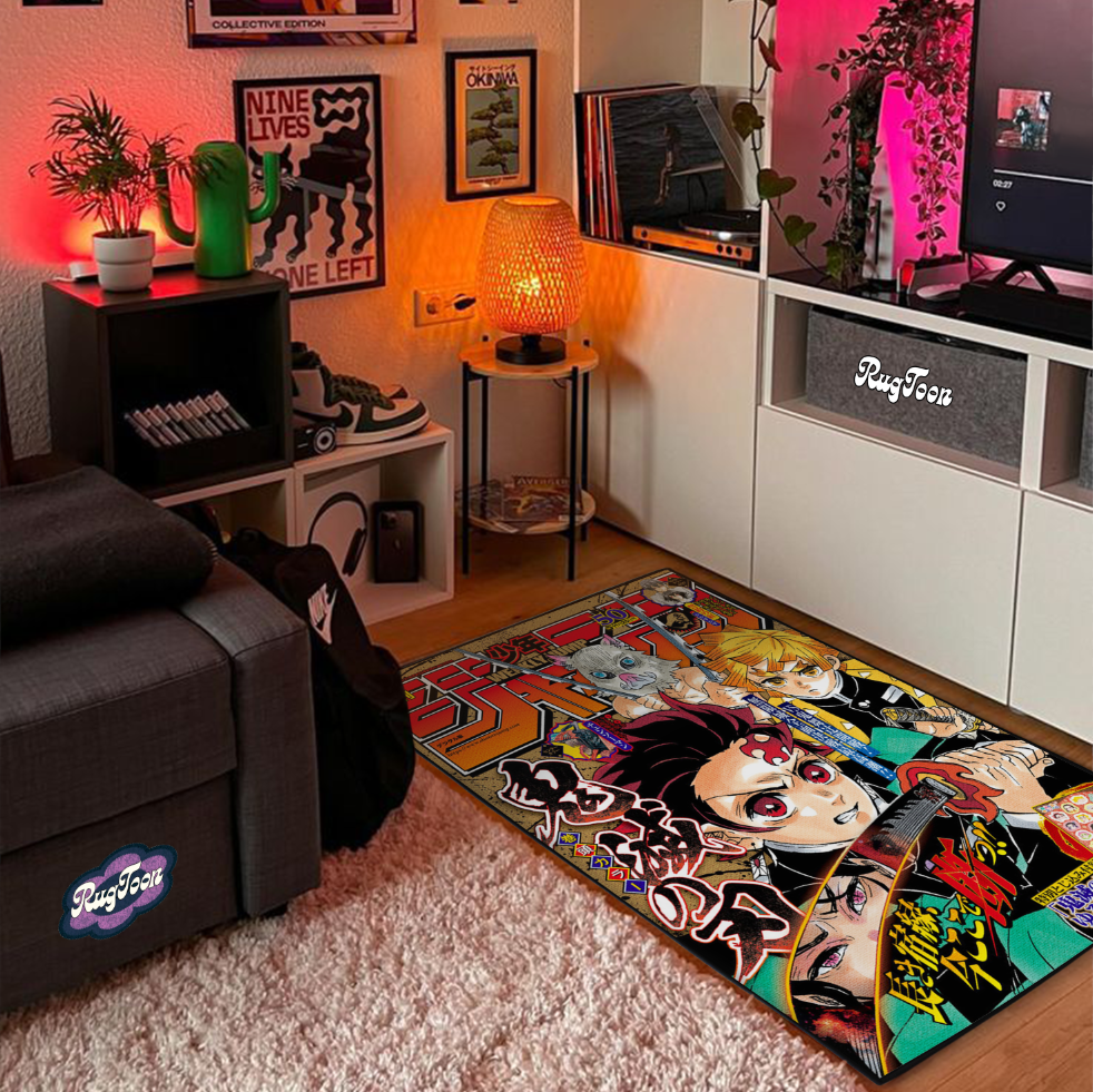 Bring the world of Demon Slayer to your room with this stunning Tanjiro manga cover-art rug, perfect for anime and shonen fans.