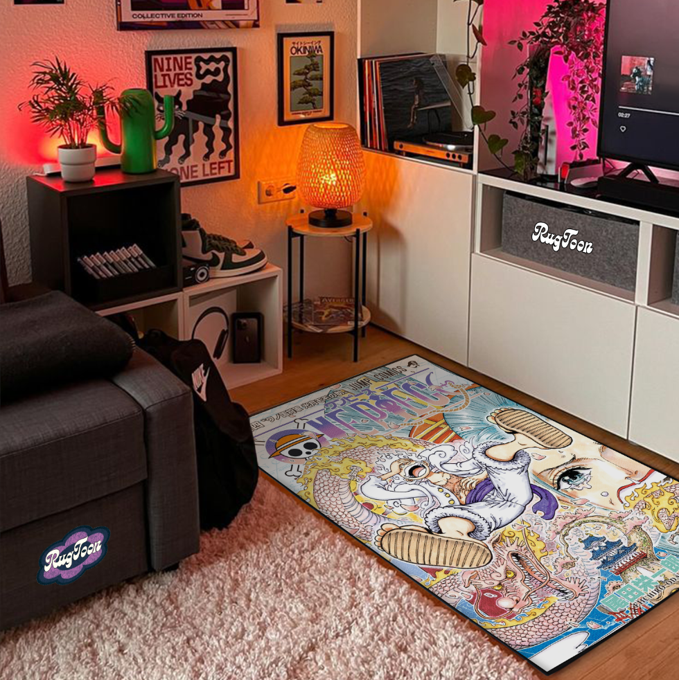 Bring the epic spirit of One Piece into your home with this Luffy Gear 5 cover-art rug, a must-have for manga fans and collectors.