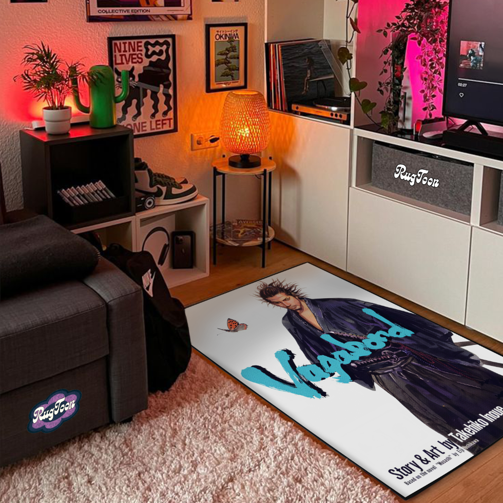 Bring the legendary world of Vagabond into your room with this stunning Miyamoto Musashi manga cover-art rug, perfect for seinen and samurai fans.